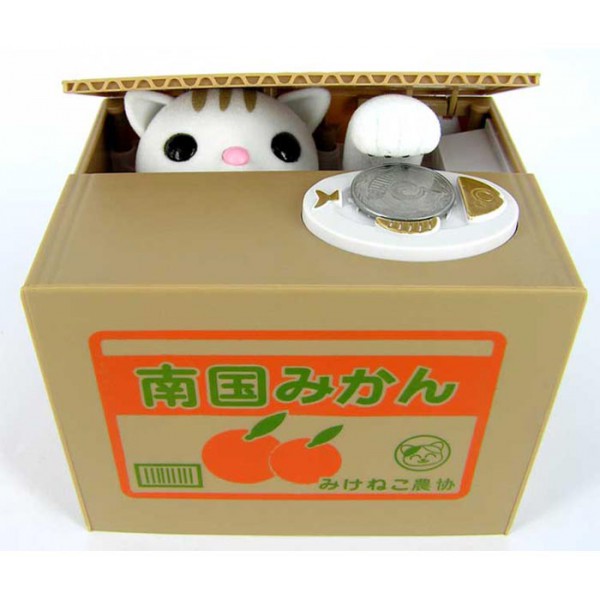 Представляем Вашему вниманию интерактивную копилку Котик Воришка - положите ему на тарелку вашу монетку и этот котик вмиг появится из своего домика и стащит её!